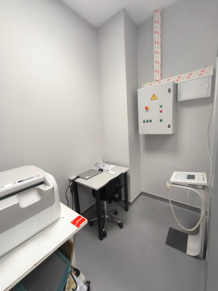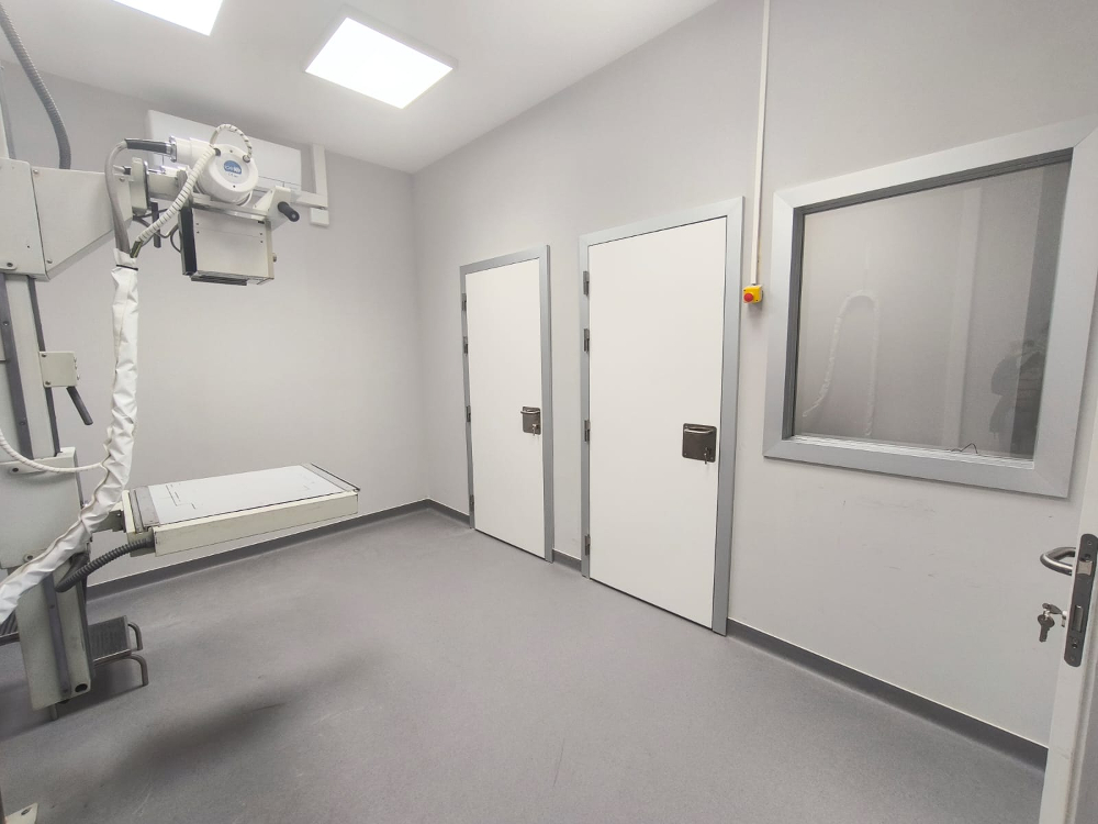 Tras la adaptación del centro médico, de hace algo más de un año, se ha procedido a realizar una ampliación para dar cabida a una sala de RX, que se localizaba en otro edificio y que se había quedado desactualizada. La nueva sala, más amplia, cuenta con vestuario y sala de control además se ha instalado un suelo técnico al tiempo que se ha mejorado la accesibilidad y el confort de los usuarios/as.
